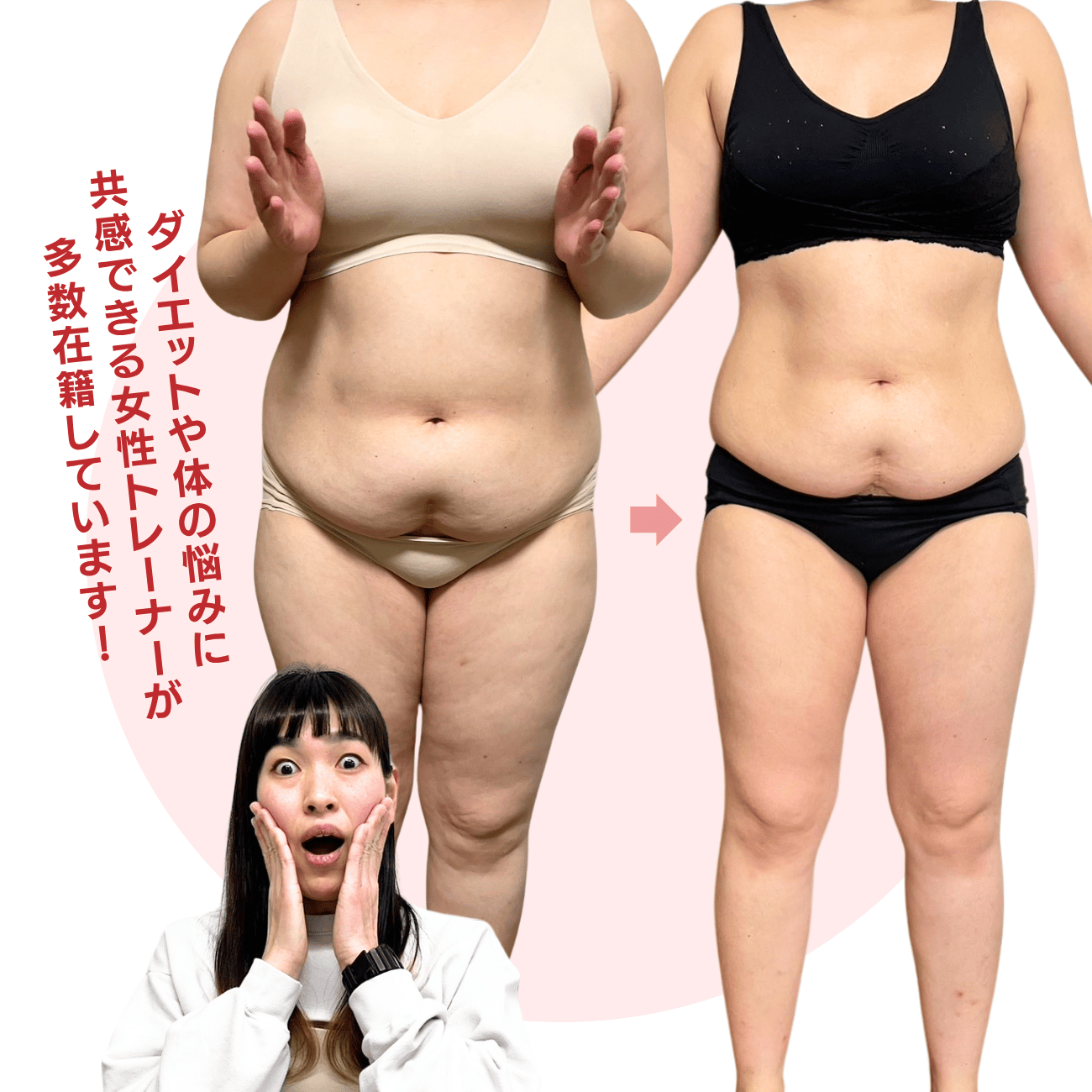 トレーニングや食事管理だけでなく、女性の心のケアも大切にしたサポートを行っています。