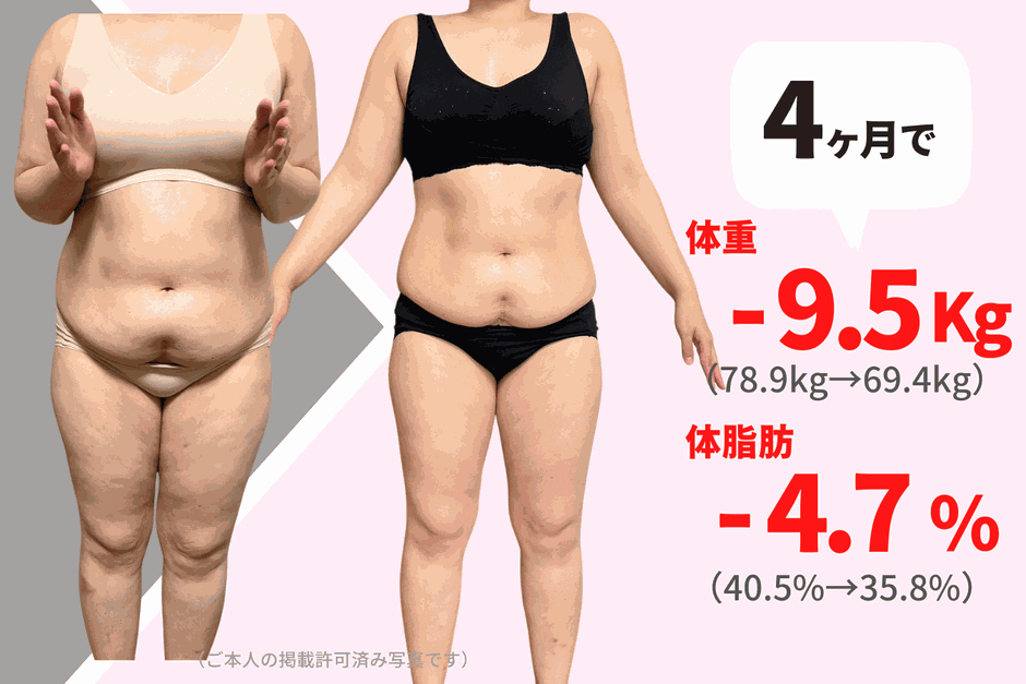 2ヶ月で-8.8kg、ダイエット教室終了後もさらに痩せて-10kg!素晴らしい結果ですね!